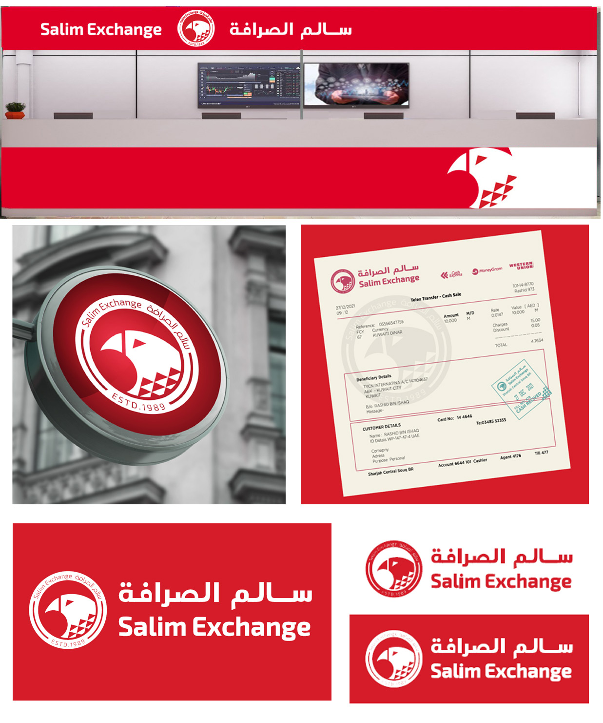 Salim Exchange is a 40 yr old Financial institution based out of Sharjah, with its branches across the city. The brand approached Zerco team for creating a new logo, brand identity and interior design concept for its up coming new Money Exchange in Sharjah International Airport. The new identity is aimed at attracting more young travelers who are the frequent fliers. The new logo is the personified modern falcon, the national emblem of Emirates. The primary brand color red is the National color which also is the most attractive brand pantone. Interior design is curated with elegant materials and detailed fit out execution to achieve the highest grade workmanship. The signage and lighting is customized and handcrafted to meet the best results that surpass the Airport standards.