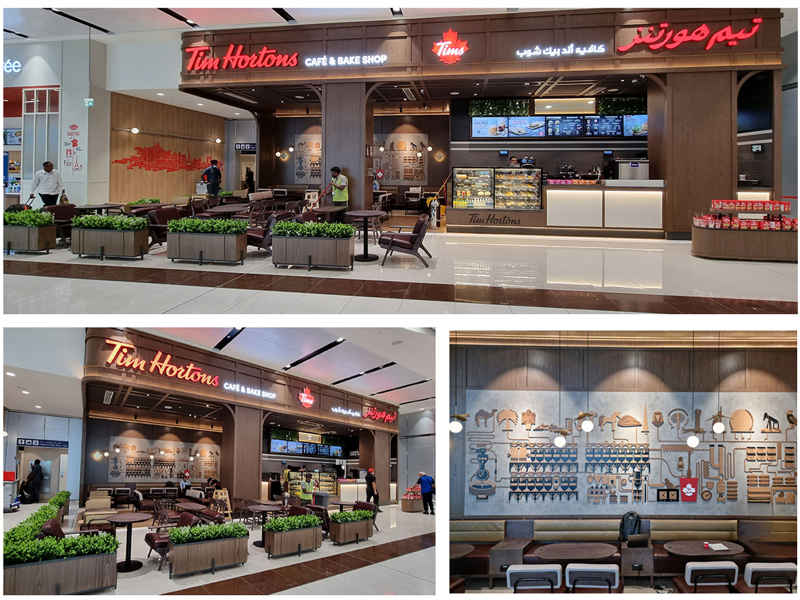 Team Zerco have successfully handover the largest F&B project in Sharjah International Airport, Tim Hortons Iconic destination at Sharjah International Airport celebrating its brand heritage, humble culture. Travelers are welcomed with warm and inviting brand design elements including signage, Terrazzo flooring , Chabros Veneer wooden cladding, Lava rock Dupont Corian counter top, custom maple design lighting, Custom furniture, Hall of fame Art wall displaying the Tims journey over the years that reinforce the brand culture. The store strengthens the Tim Hortons brand, providing an inspiring and engaging experience emblematic of the company’s Canadian roots for every Air travellers. Zerco Carpentry division ensured the finest handcrafted woodworks to deliver exquisite quality. The project has been a milestone in terms of the timely delivery with attention to detail. Grab your cup , enjoy the donuts and coffee on your flight !